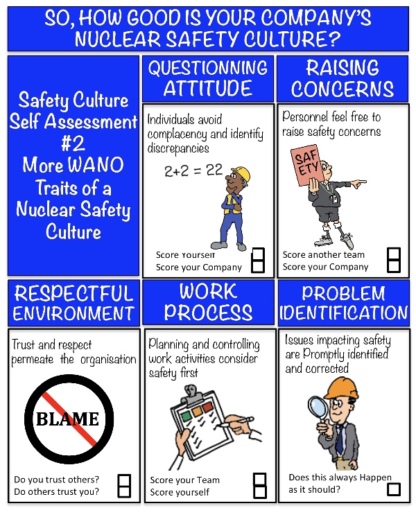 WANO, IAEA, INPO, NRC have all put together a series of traits, principles and behaviours and these should be considered alongside your company’s goals, vision and behaviours to produce your own culture. People, process and systems is the framework of our culture. The way we do things!