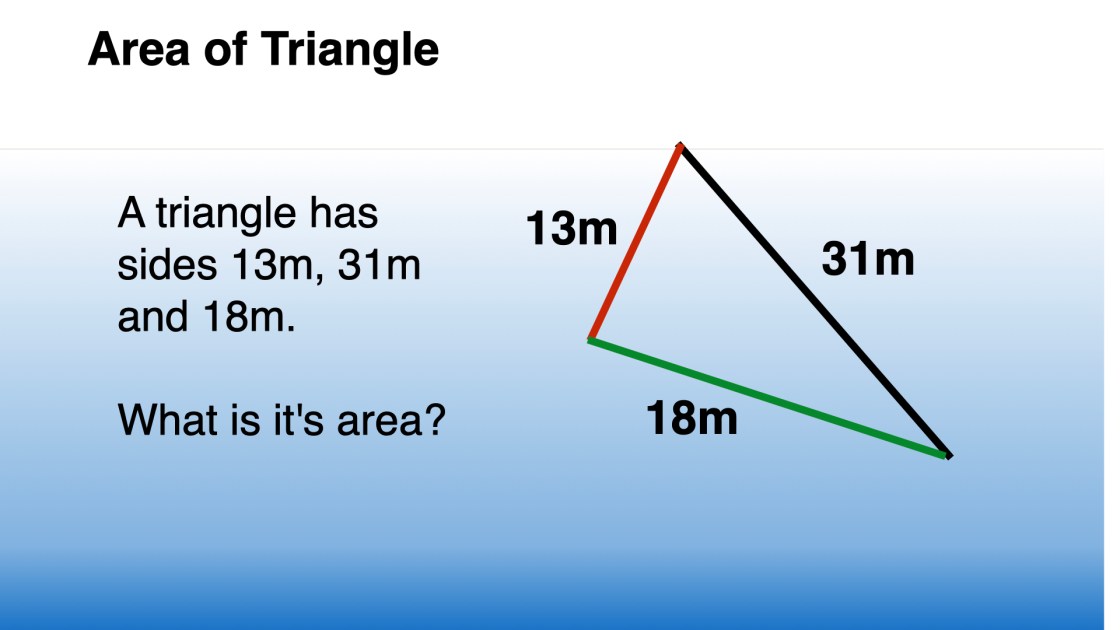 A triangle has sides 13m, 31m and 18m. What is it’s area?